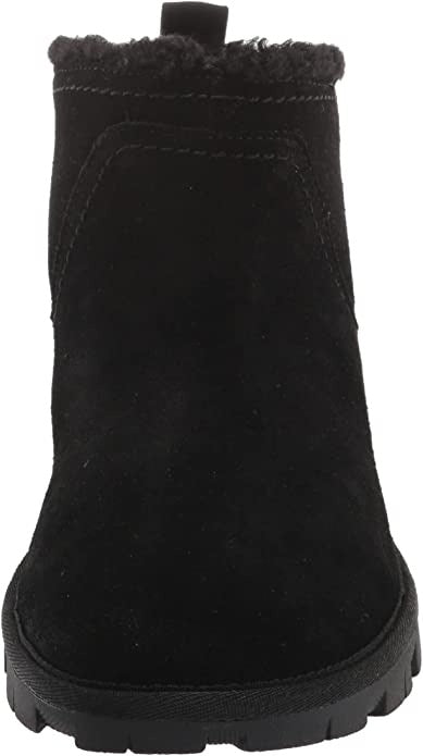Feel stylish even on a dreary day with the Dweller bootie by Lucky. This pull-on bootie has a suede upper with faux shearling lining, so your foot stays warm and cozy.