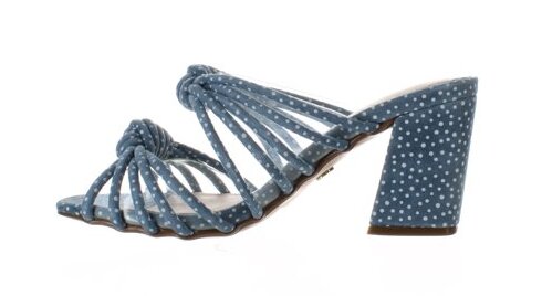 Cecelia New York Harper Denim White Slip On Open Toie Knotted Heeled Sandals