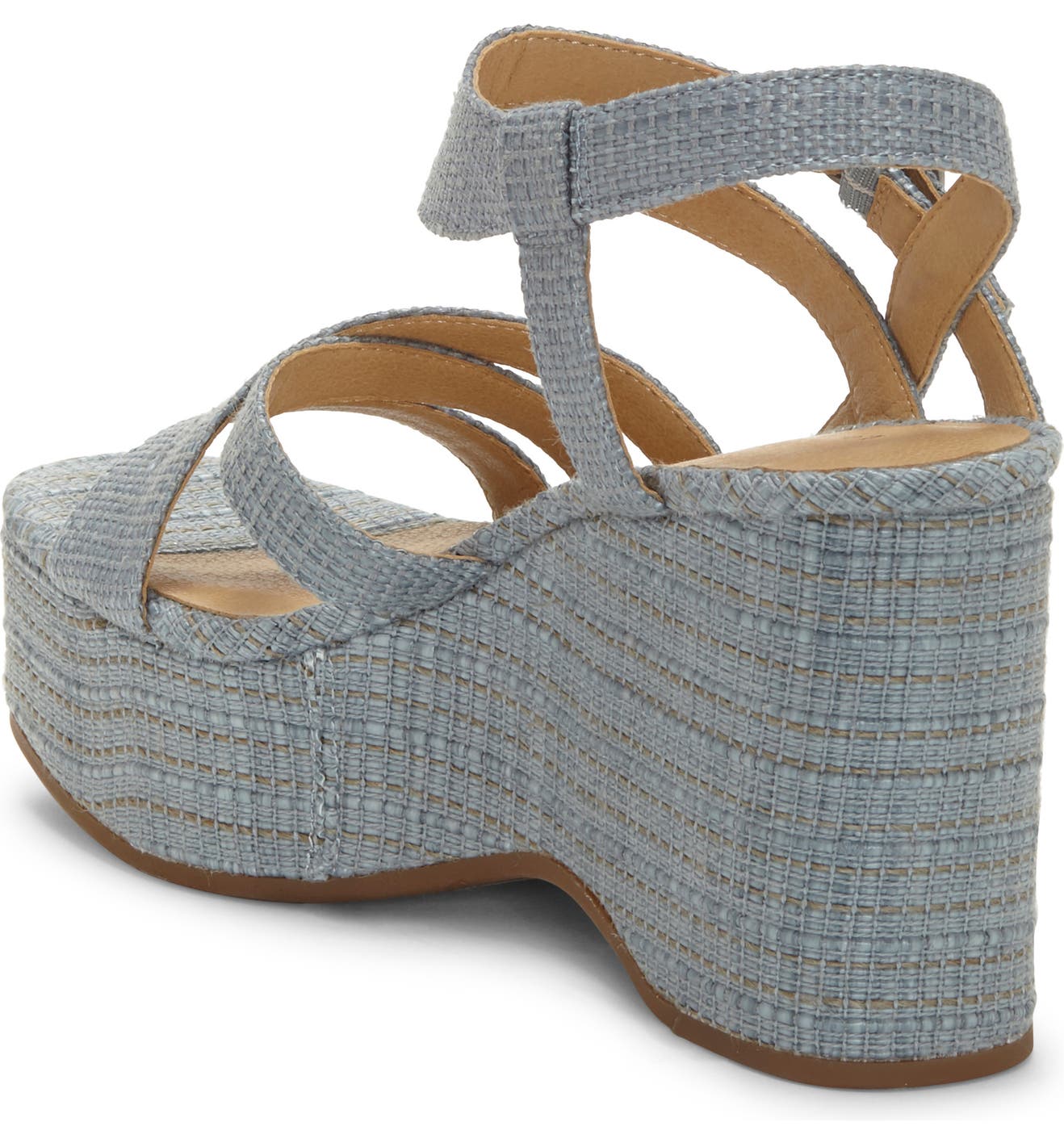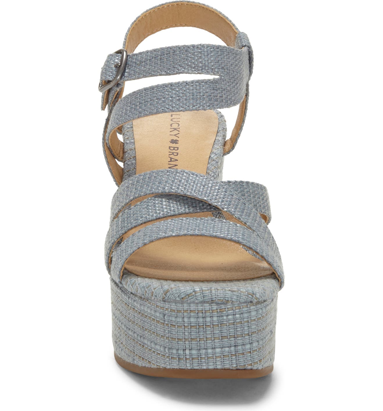 Lucky Brand Carlisha Lead Grey Raffia Sculpted Platform Wedge Ankle Strap Sandal