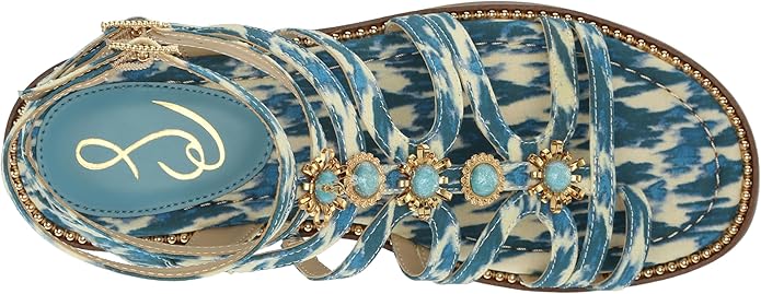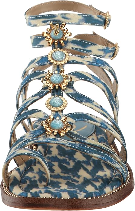 Floral-infused and textured gladiators with toe-ring and ankle-strap detailing. Make a splash by pairing with unexpected colors and exaggerated proportions.