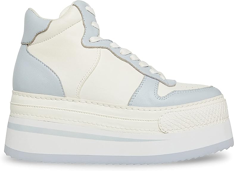 Steve Madden Brodiee Blue Multi Lace Up Platform Wedge High Top Fashion Sneakers