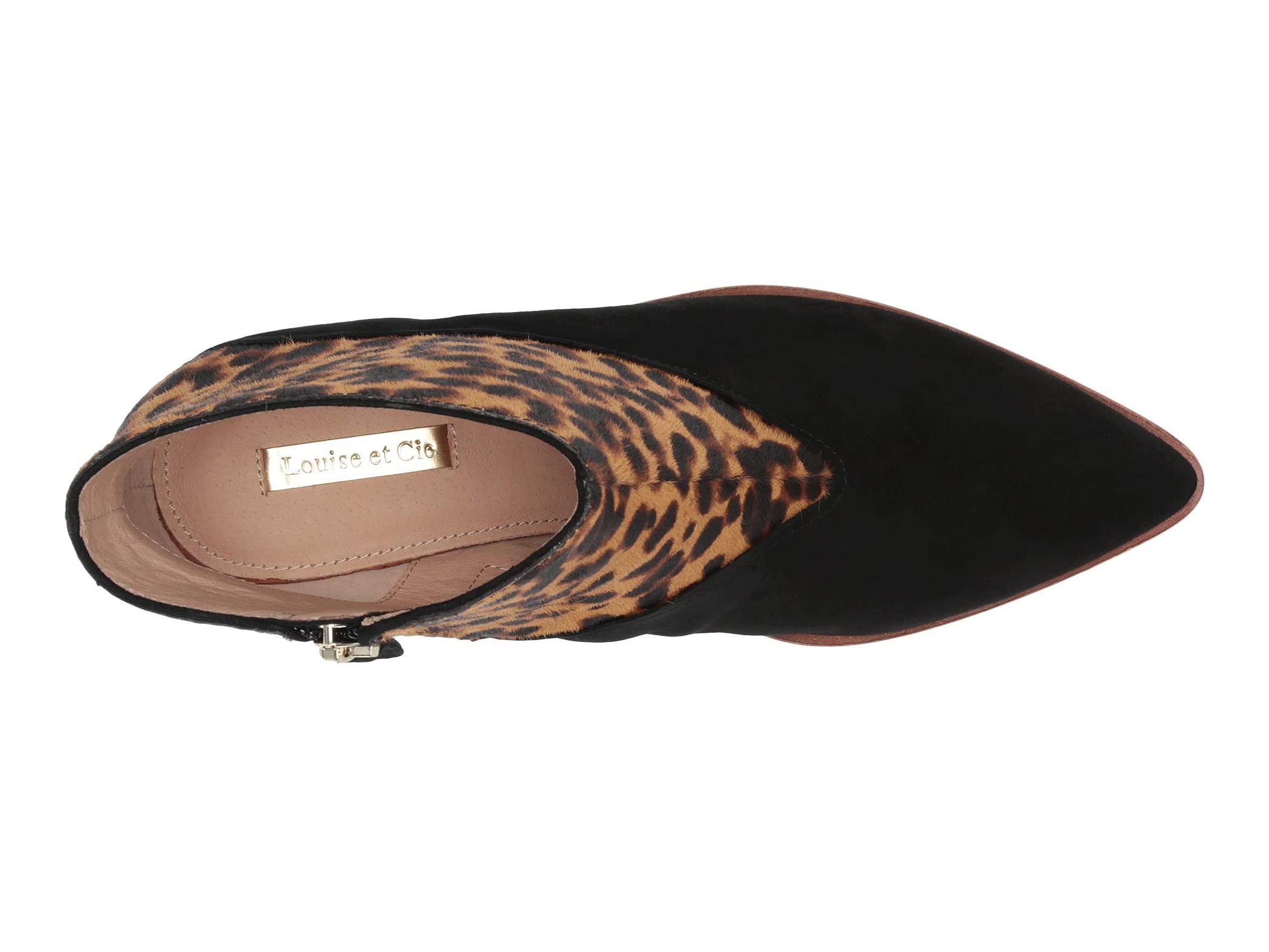 Louise Et Cie Women's VADA Exotic Pointed Toe Stacked Heel Suede Booties LEOPARD