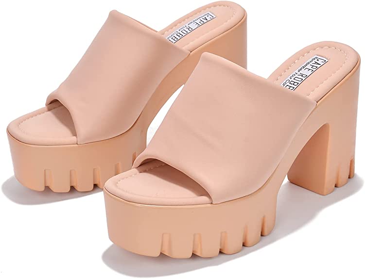 Cape Robbin Echoya Nude Slip On Block Heel Open Round Toe Fashion Heeled Sandals