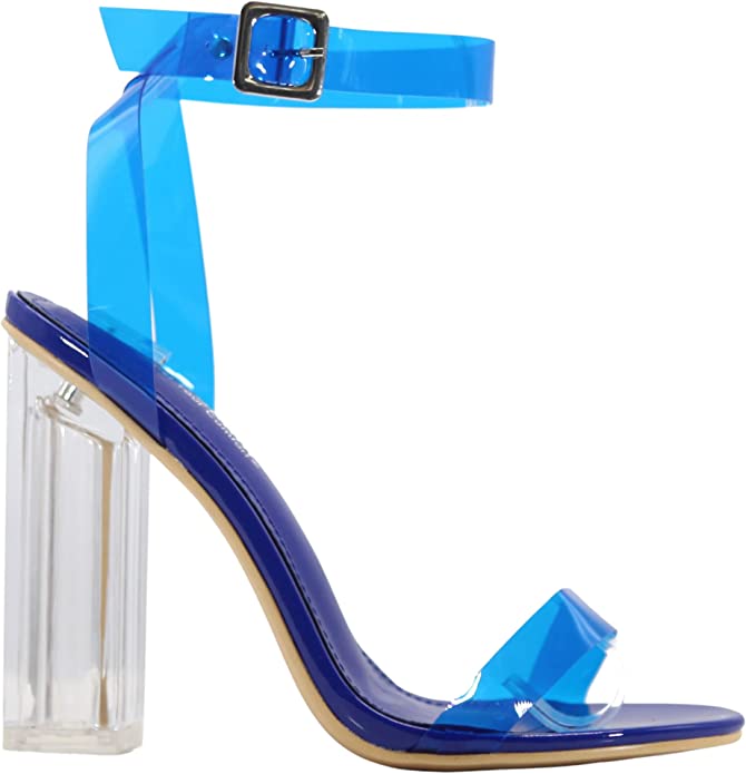 Cape Robbin Maria-2 Blue Clear Block High Heel Transparent Open Toe Pumps