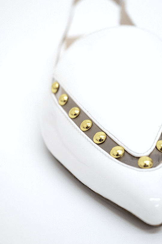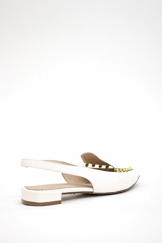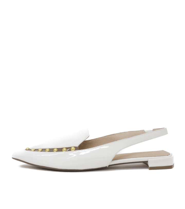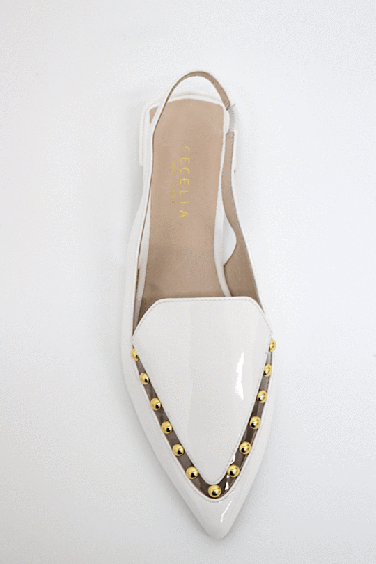 Cecelia New York Cleo Embellished Slingback Pointed Toe Flats White Patent Clear