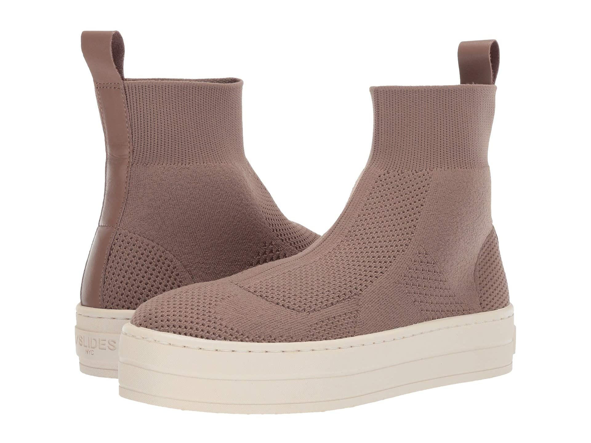 JSlides Women's HEROE Sock High Top Fabric Pull-on Sneaker Flat Taupe Knit