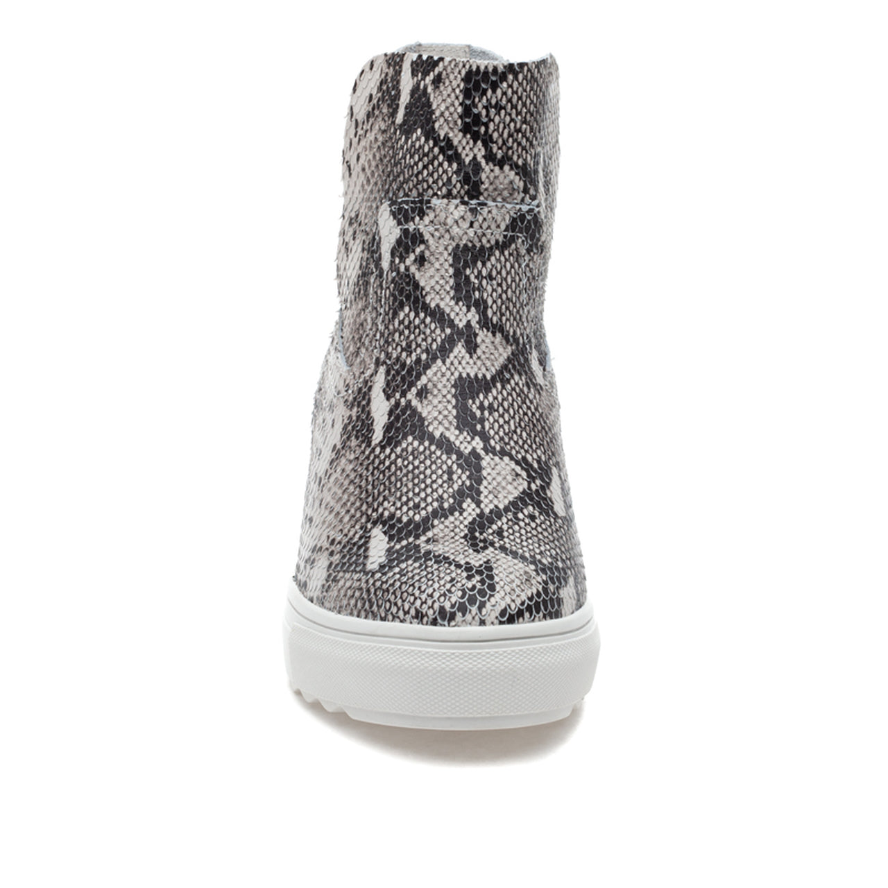 JSlides Women's POSH Hidden Wedge Round toe Platform Sneaker, OFF WHT/BLK EMB