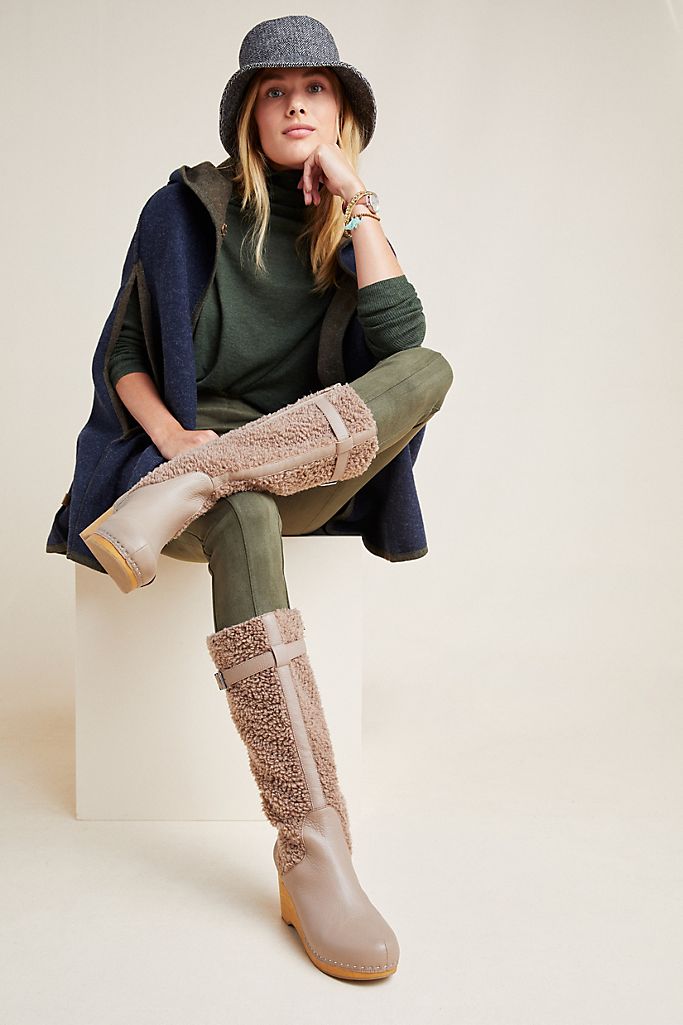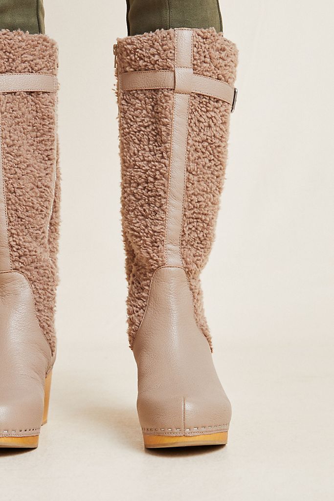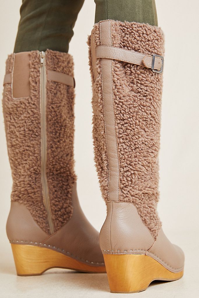 Kelsi Dagger Jagger Taupe Knee High Clog Wood Heel Wedge Round Toe Leather Boot