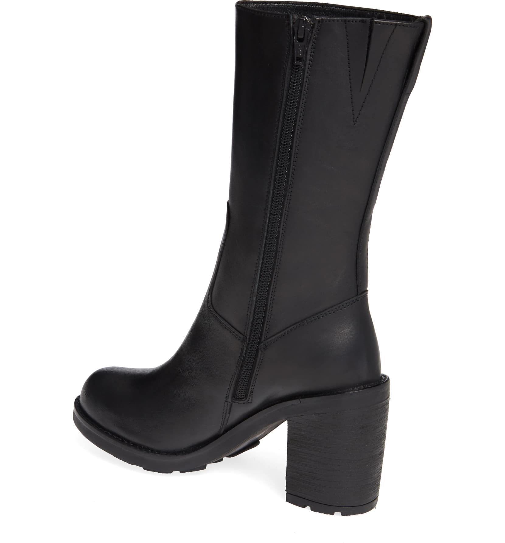 A mid-height boot packs a powerful punch with its round toe, grungy lug sole and chunky stacked heel.