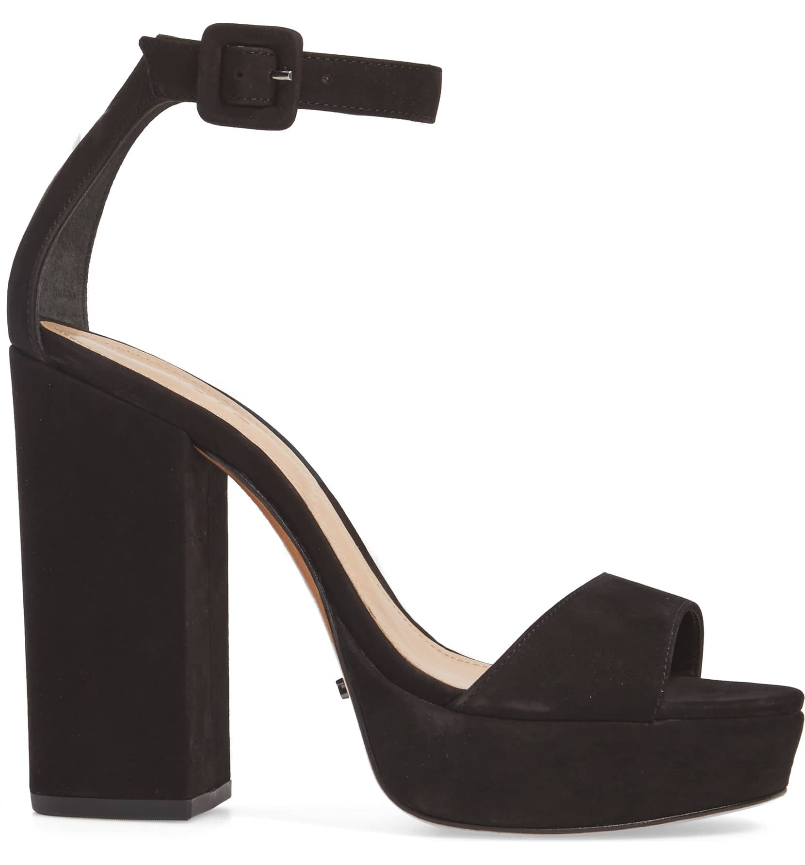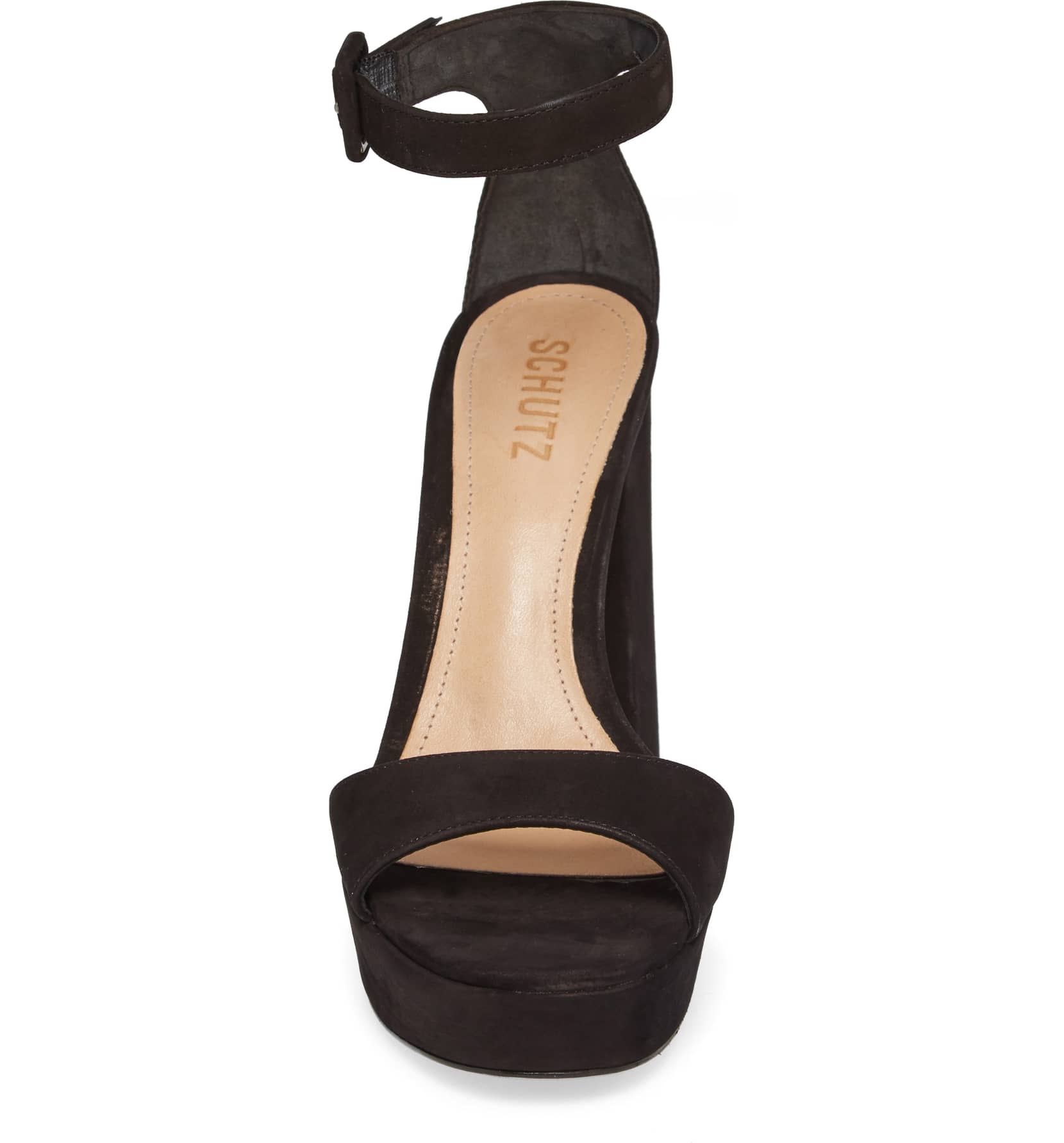 Schutz Mikella Black Nubuck Suede Platform Ankle Strap Open Toe Pumps Sandals
