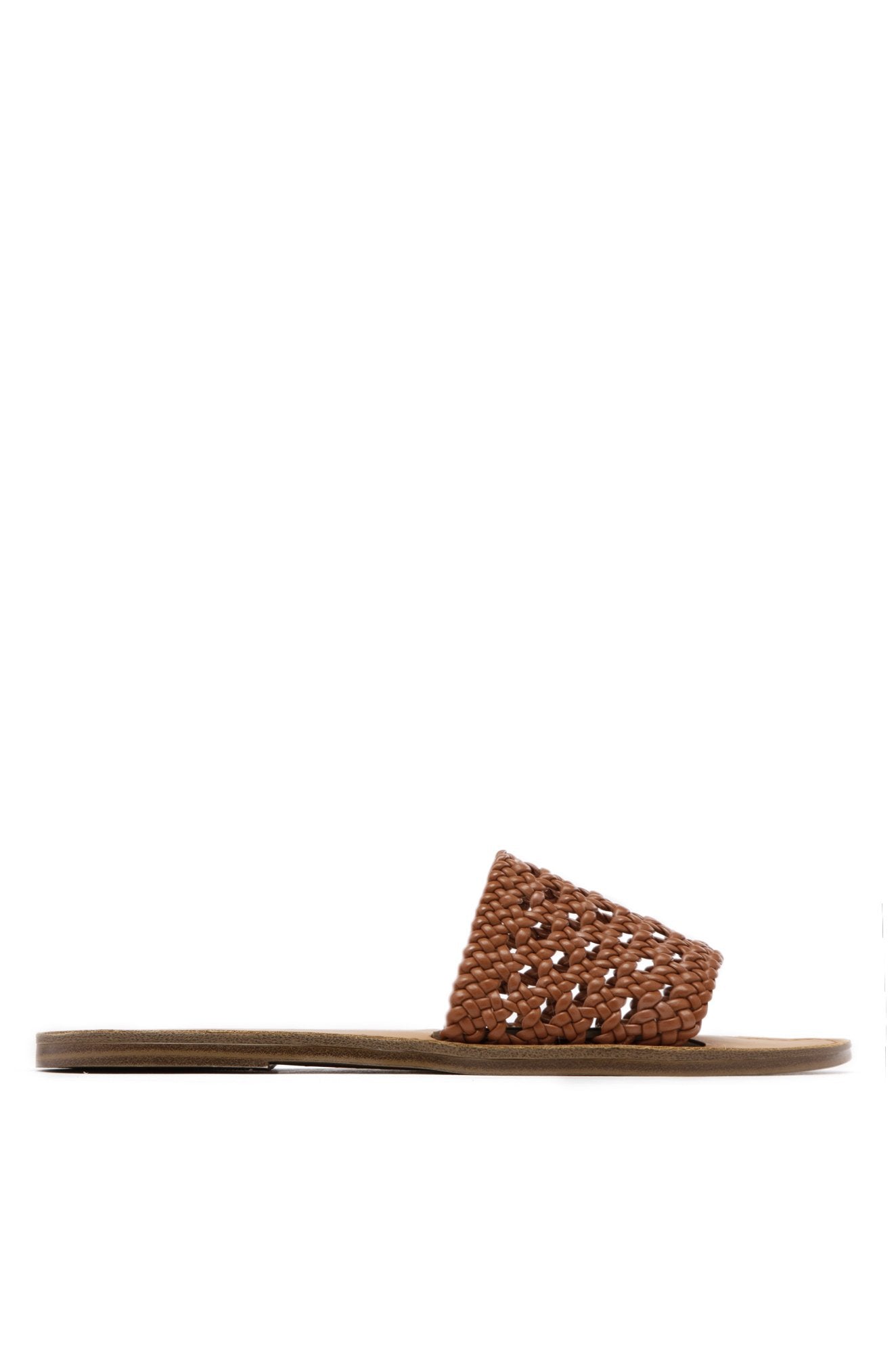 Shoe Republic Reims Cognac Tan Woven Vegan Leather Open Toe Flat Sandals