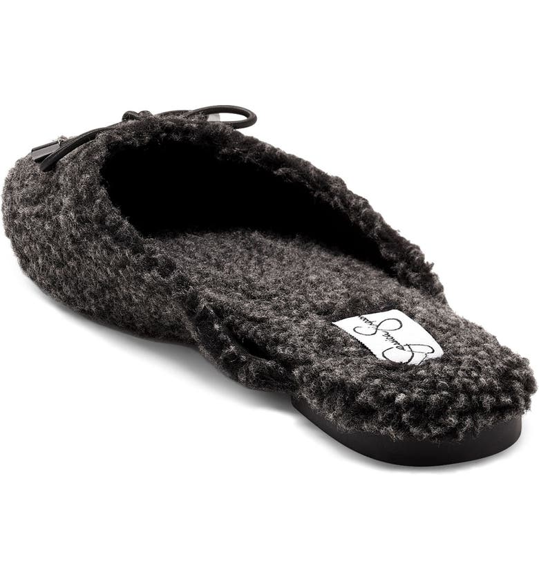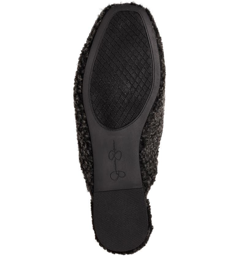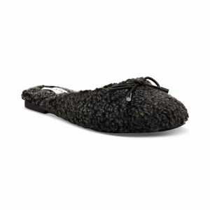 Jessica Simpson Tracee Black Cozy Mule Fur Bow Round Toe Slip On Flat Slippers