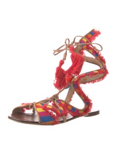 ringe, contrasting applications, ethnic design, buckling ankle strap closure, leather lining, rubber sole, flat, round toeline