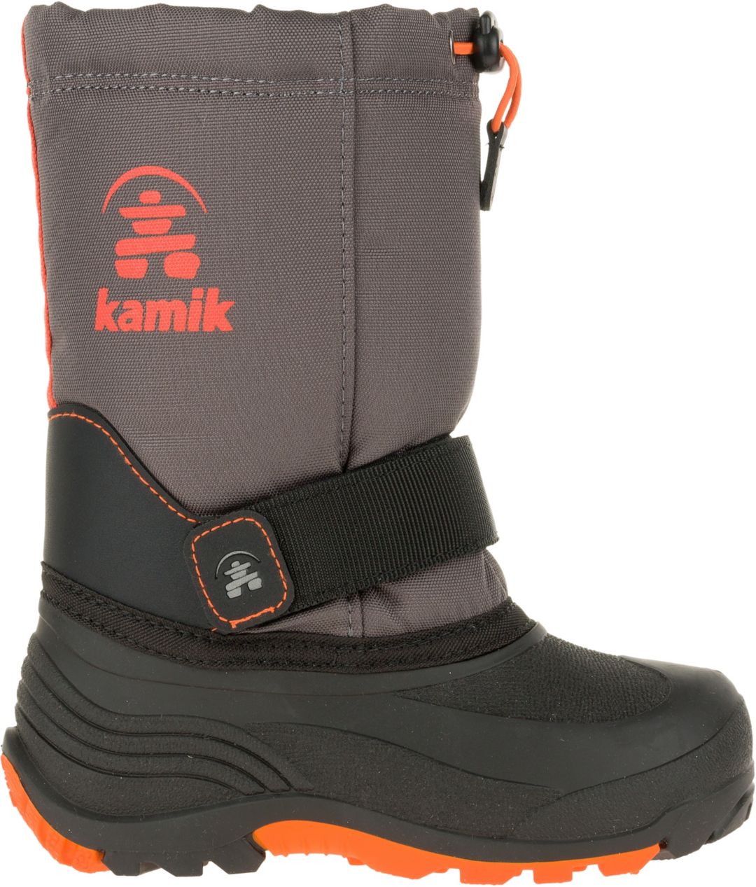 Kamik Kids Waterbug5 Snow Boot, Charcoal/Red Rounded Toe Insulated Booties