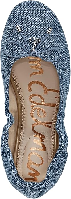 Sam Edelman Felicia Vintage Denim Leather Slip On Rounded Toe Bow Ballet Flats