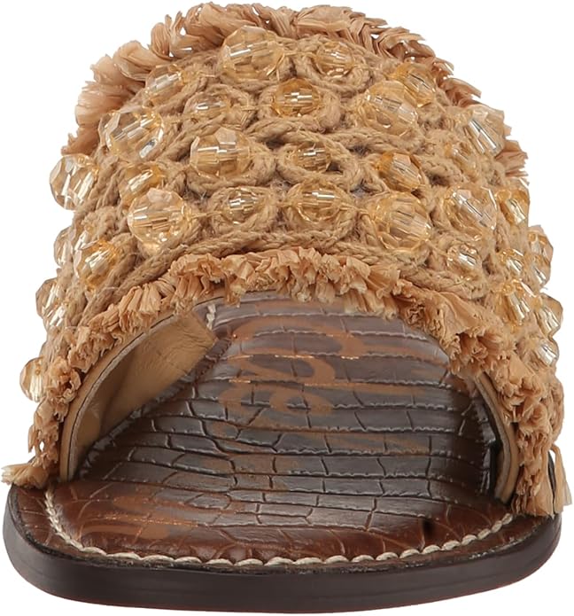 Sam Edelman Gladys Natural Raffia Open Toe Slip On Flat Slides Fashion Sandals