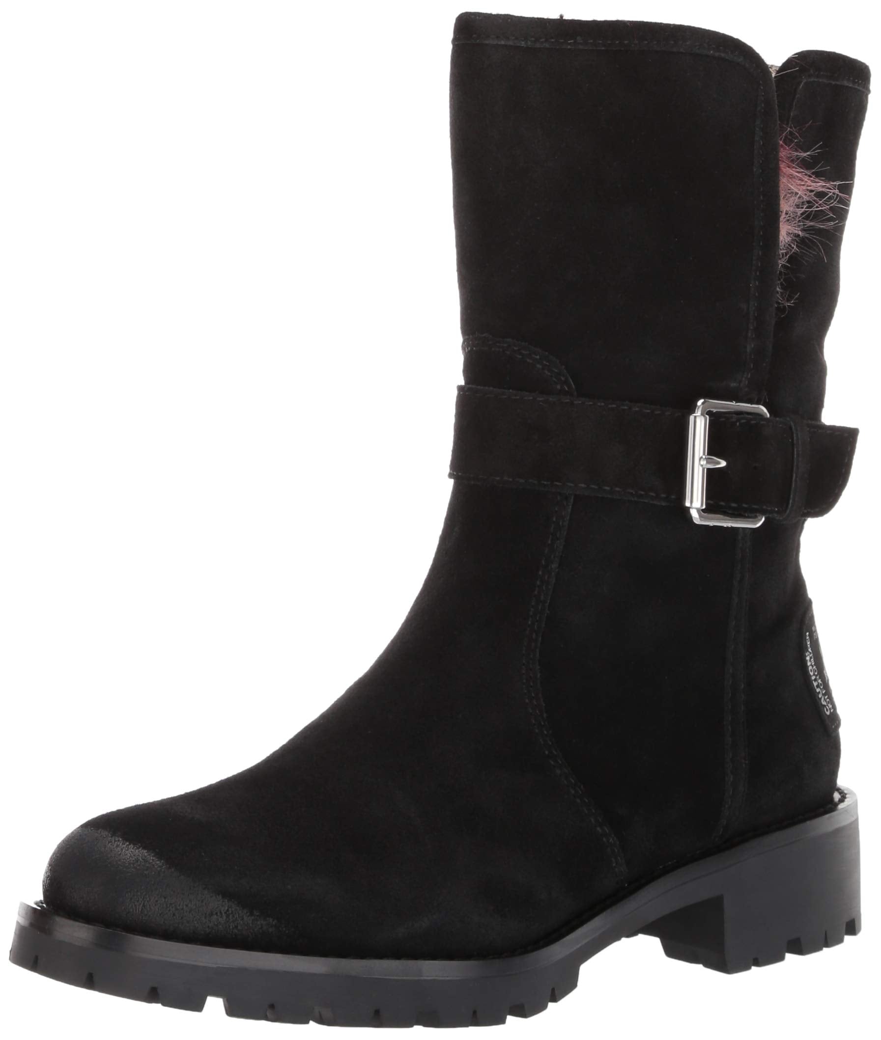 Sam Edelman Jeanie Black Suede Multi Color Fur Lined Moto Combat Chelsea Boots