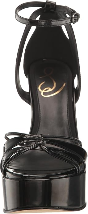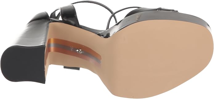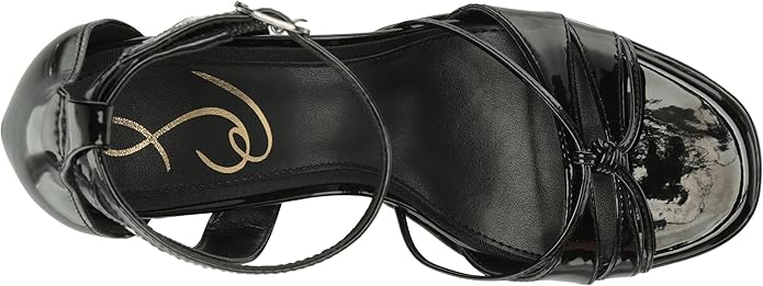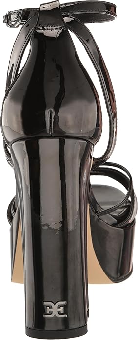 Sam Edelman Kamille Black Patent Ankle Strap Open Toe Block Heeled Sandals
