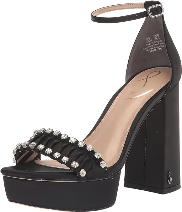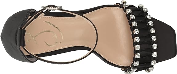 Sam Edelman Ninette Black Satin Embellished Ankle Strap Block Heeled Sandals