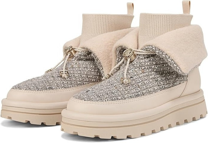 Meet Olin - a fold over ankle bootie with textured paneling and chunky lug sole. The cozy cuffs add a warm touch, perfect for chilly city strolls and casual coffee dates.