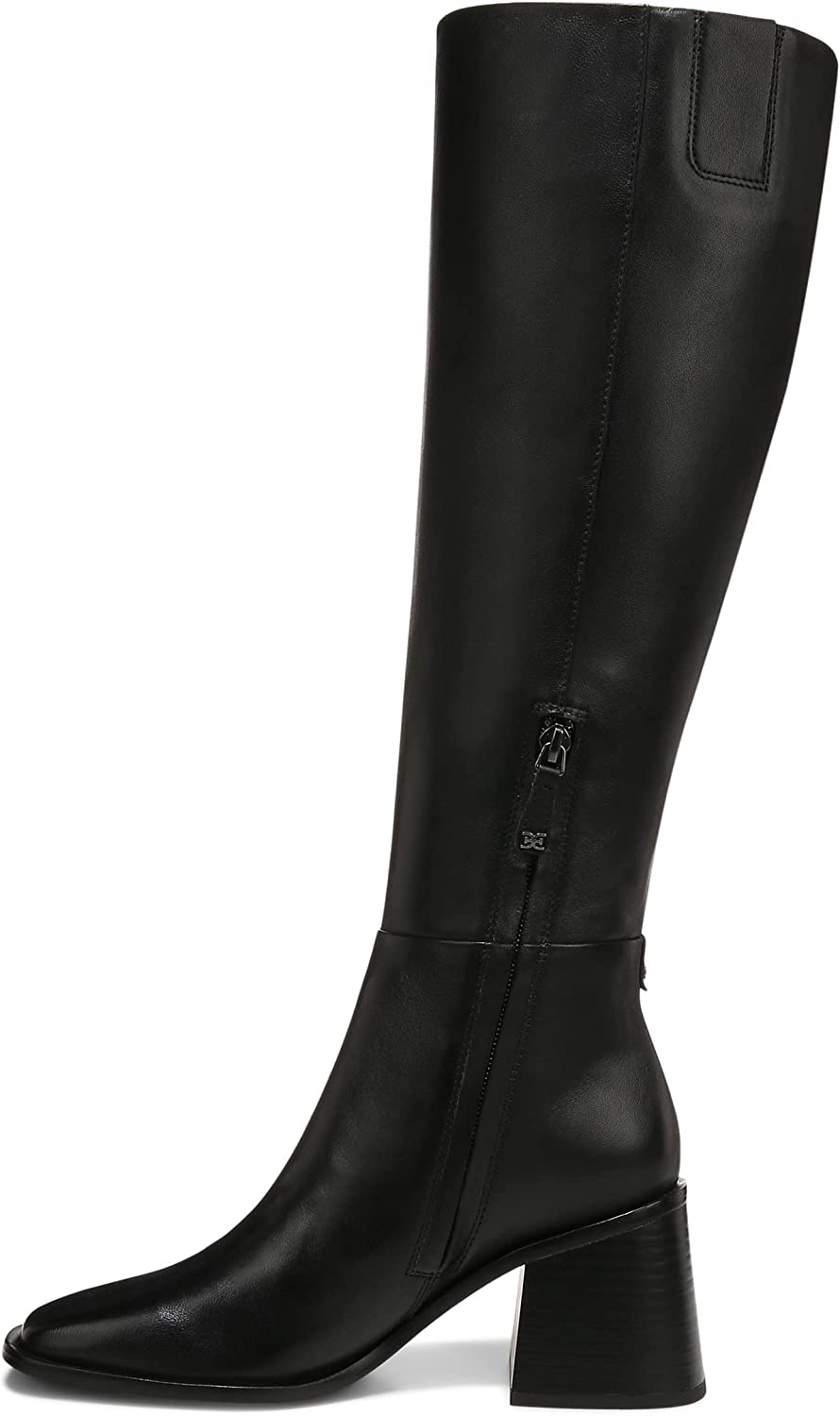 Sam Edelman Wade Stacked Heel Square Toe Retro Wide Calf Knee High Fashion Boots
