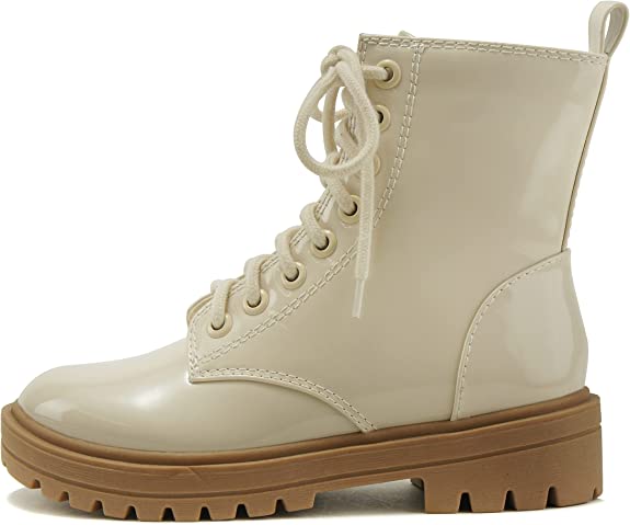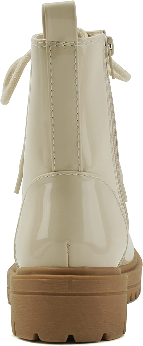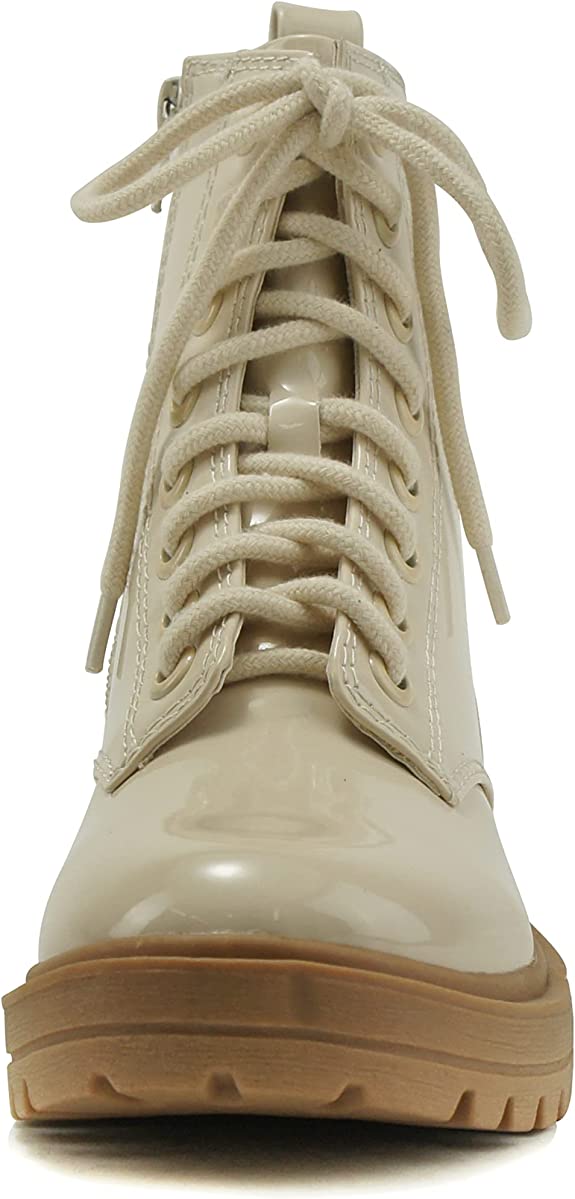 Soda Firm Bone Patent Lace Up Rounded Toe Chunky Platform Combat Ankle Boots