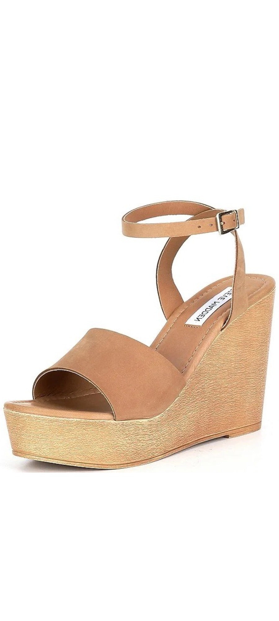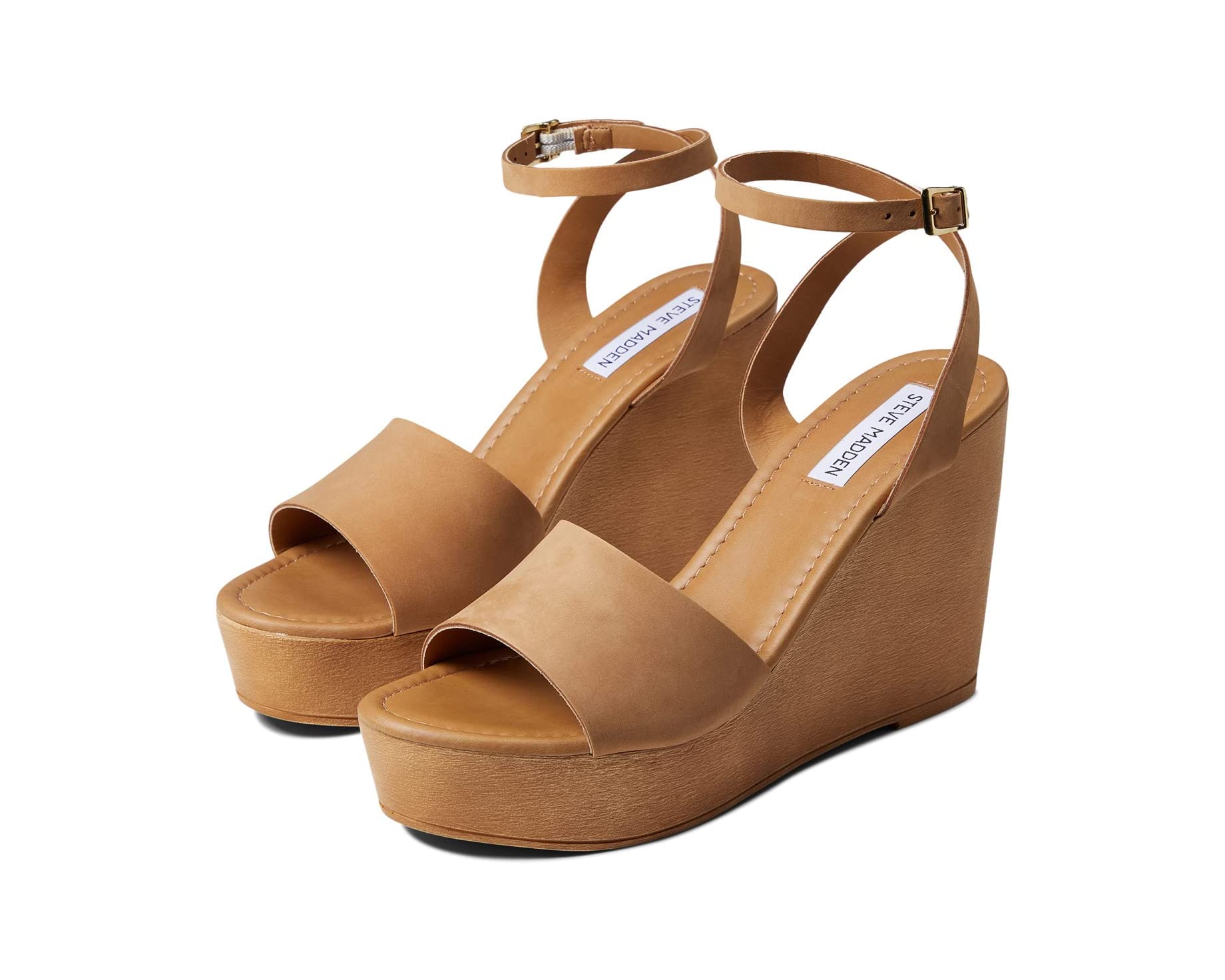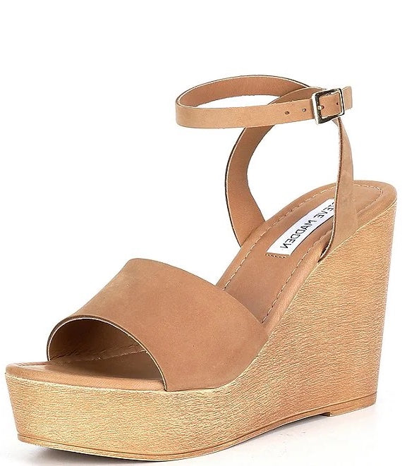 Steve Madden Welsh Camel Nubuck Ankle Strap Open Toe Platform Wedge Sandal