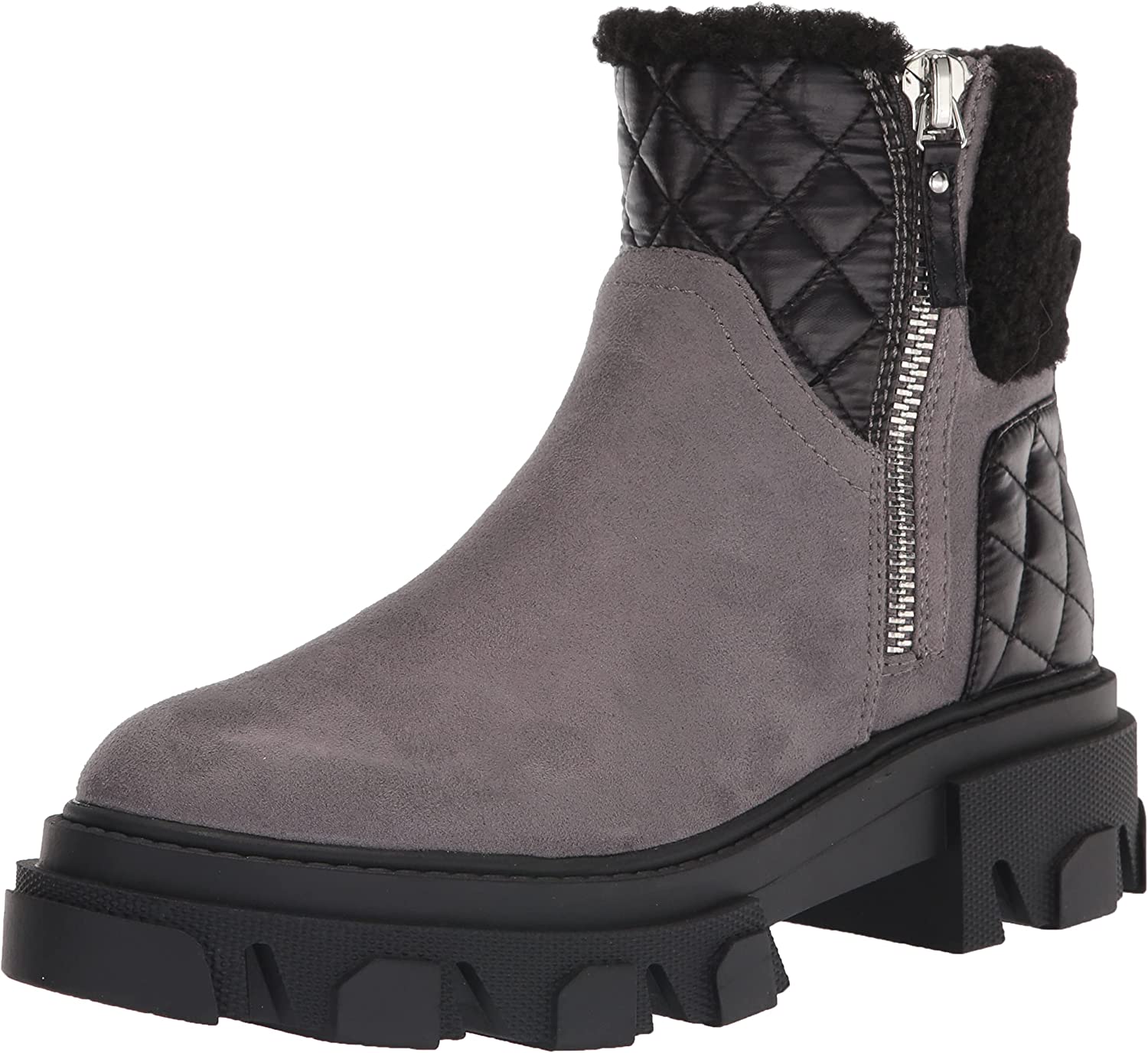Nine West Colbee2 Grey Suede Zip Closure Rounded Toe Chunky Leather Ankle Boots