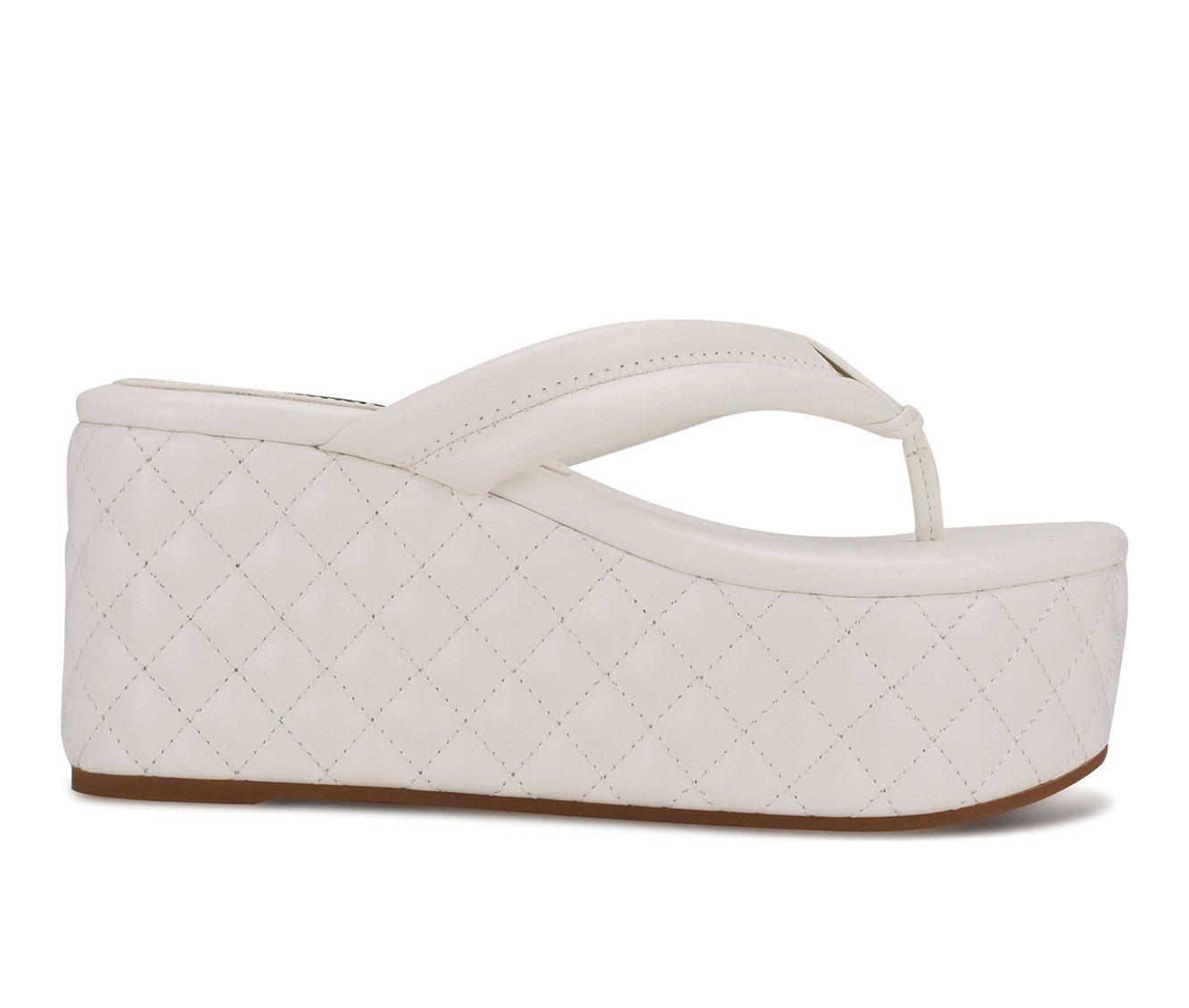 Nine West Newya White Slip On Rounded Open Toe Thong Mule Platform Wedge Sandal