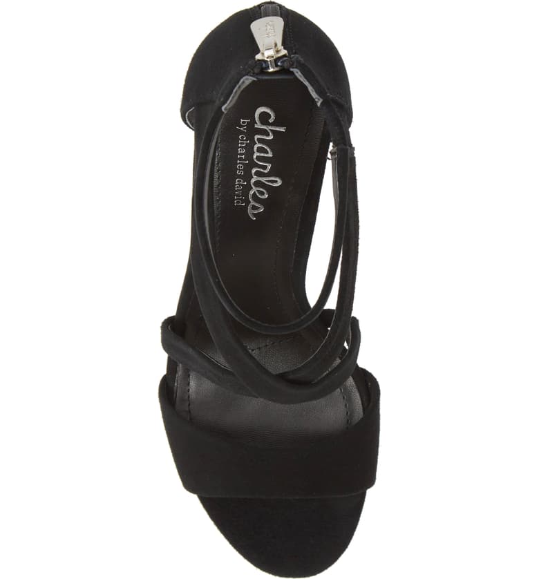 Charles David Harrison Suede Strappy heel hight Sandal Black Open Toe Pumps
