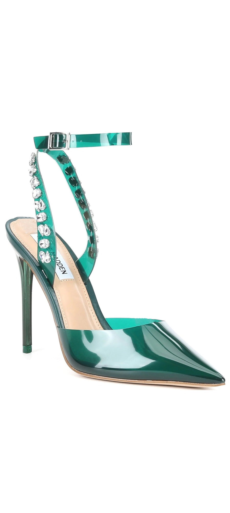 Going for a bold look is easy with the Alessi Pointed-Toe Ankle Strap Heels! Prints at the upper and footbed add to the visual interest, while the clear forefoot upper gives it a unique look.