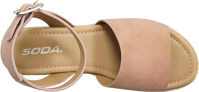 Soda Topic Rosy Nude Espadrilles Ankle Strap Studded Open Toe Wedge Heel Sandals