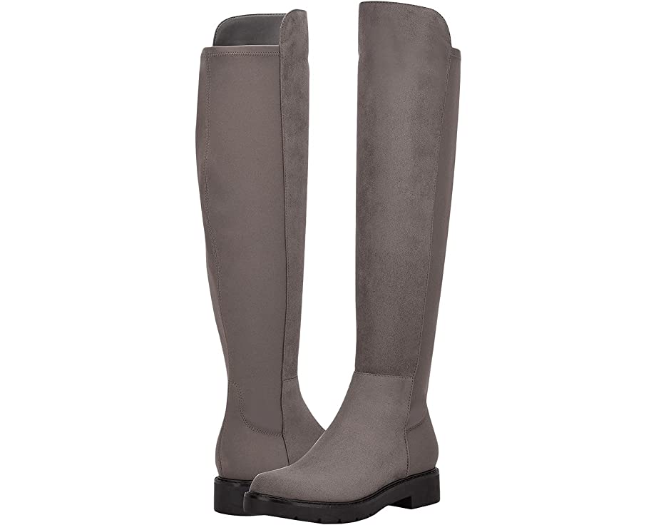 Nine West Tread2 Charcoal Suede Zip Closure Leather Over The Knee Dress Boots