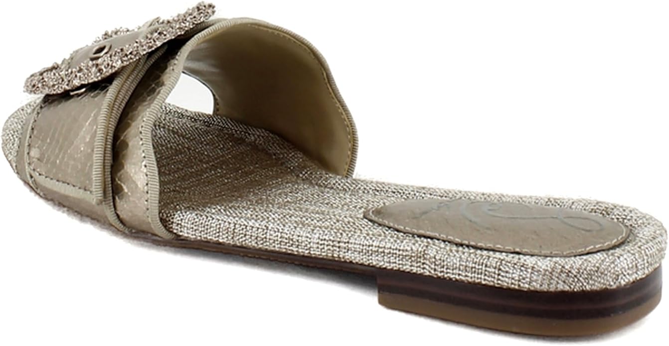 The Bambi slide sandals boast a raffia upper complemented by an oversized resin buckle. Play with proportion and pack a punch.