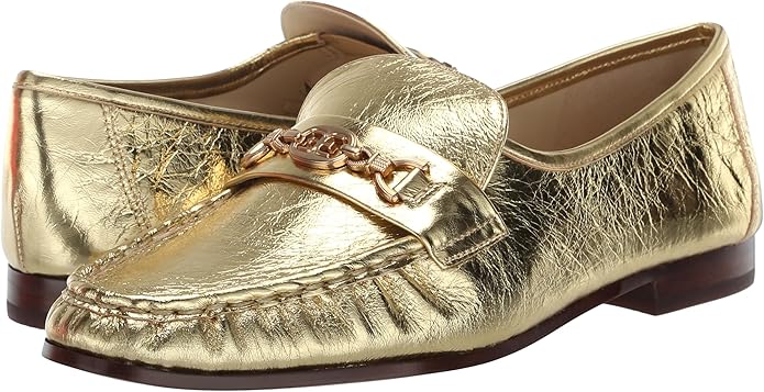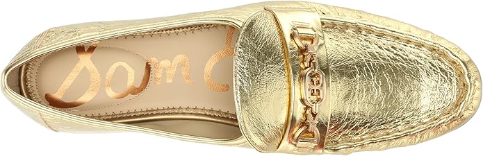 Sam Edelman Lucca Amber Gold Almond Toe Slip On Stacked Heel Loafers 7.5