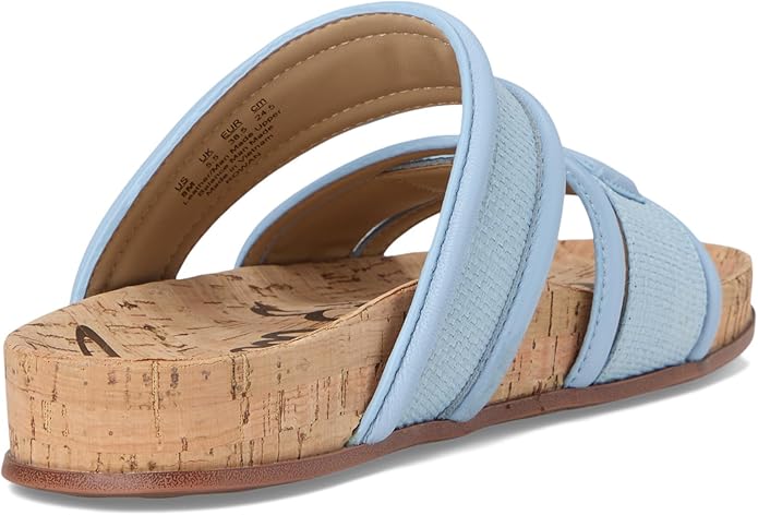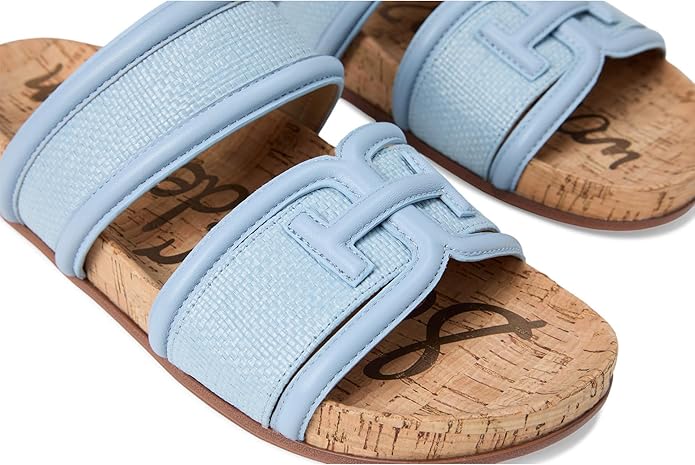 Go beyond the beach with these city savvy double-banded basketweave slides with chunky piped trim and bit detail.