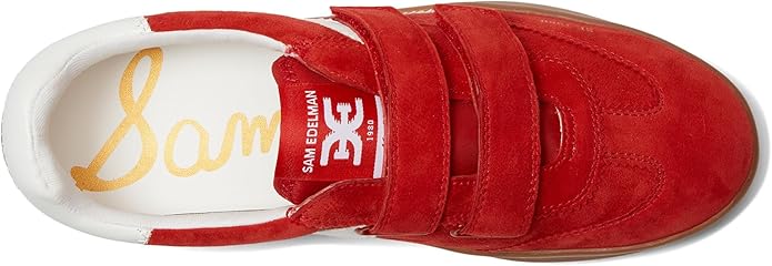 Sam Edelman Talia Red Coral Leather Rounded Toe Low Top Lace Up Flat Sneakers