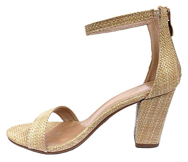 Top Moda Women's HAnnah-1 Ankle Strap High Heel Sandal, Raffia Natural