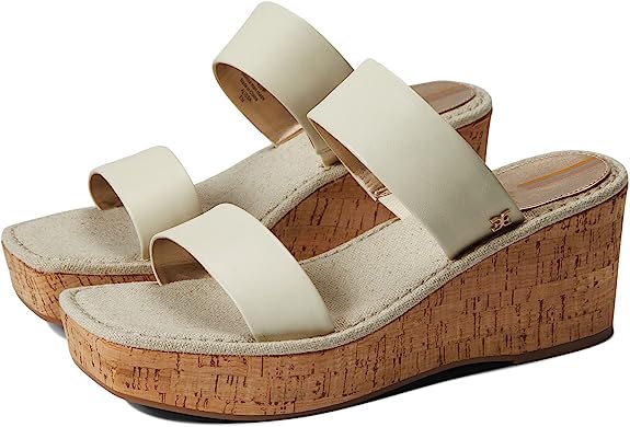 Sam Edelman Alissa Ivory Leather Slip On Double Straps Open Toe Wedges Sandals