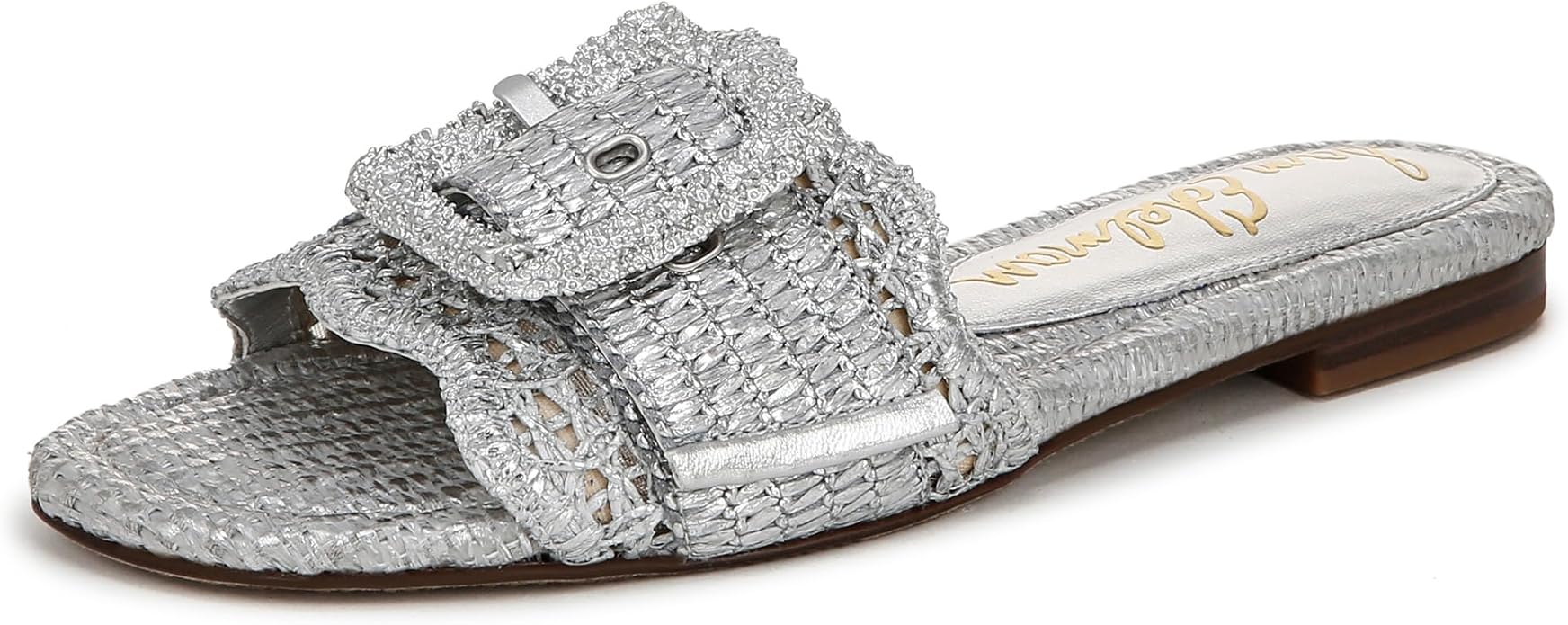 The Bambi slide sandals boast a raffia upper complemented by an oversized resin buckle. Play with proportion and pack a punch.