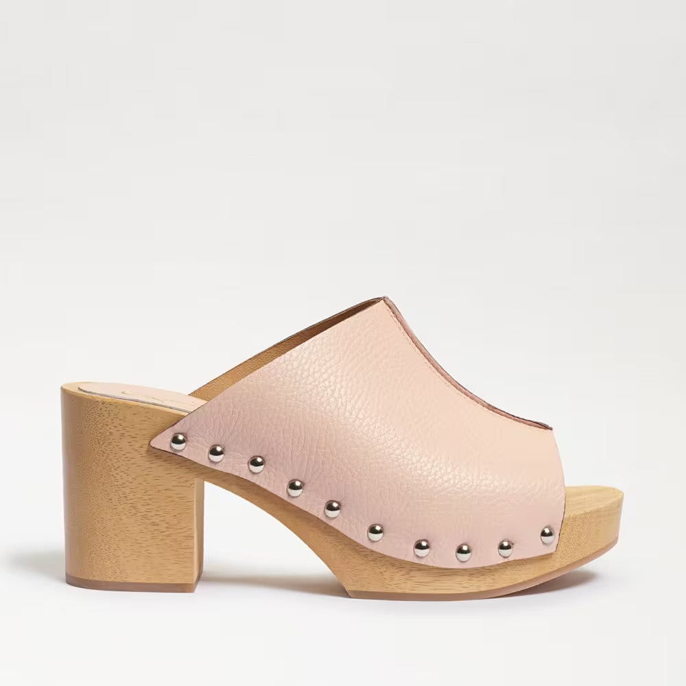 Sam Edelman Bardot Sand Leather Block Heel Open Toe Slip On Fashion Suede Mules