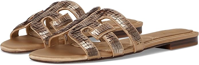 Sam Edelman Bay Molten Gold Sequin Round Open Toe Slip On Leather Strap Sandals