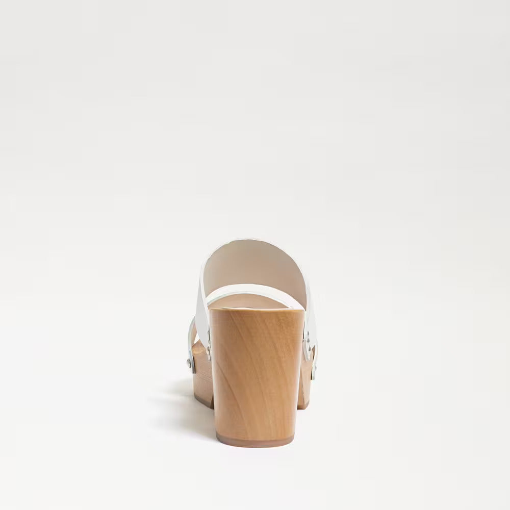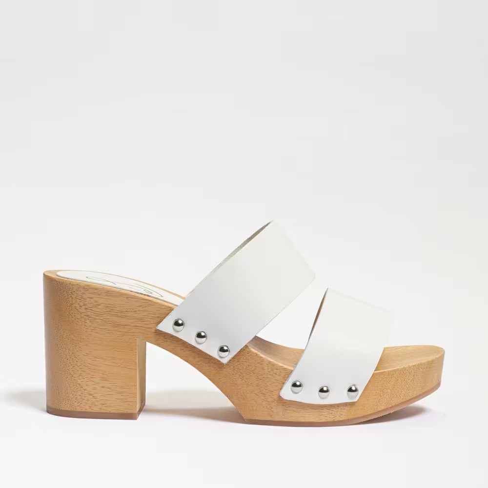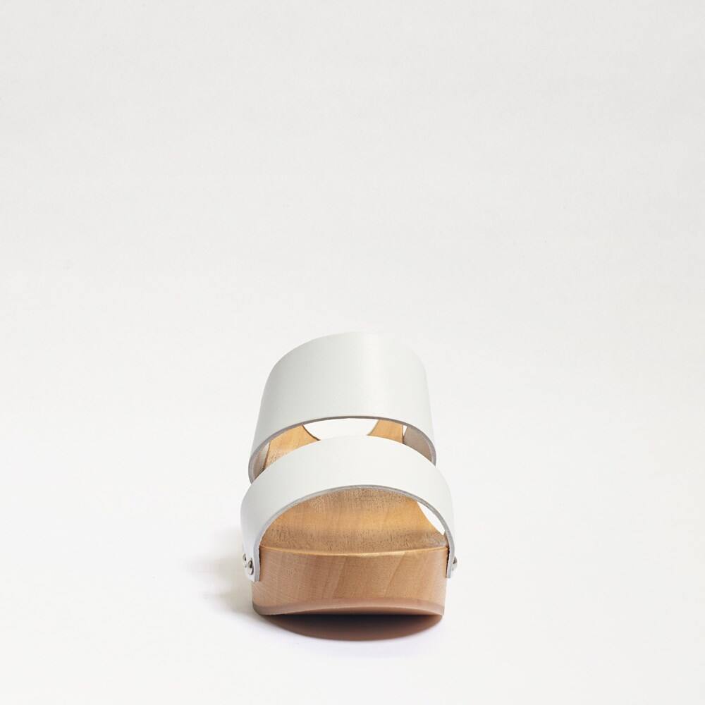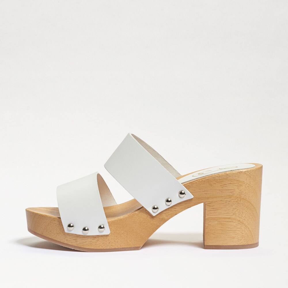 Sam Edelman Brandy White Leather Double Strap Slip On Open Toe Block Heel Mules