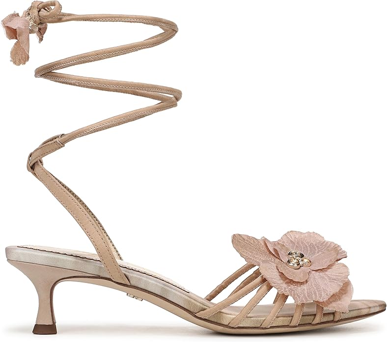Meet the Carla, your new lace-up kitten heel fantasy! This open-toe sandal exudes sultry elegance; featuring a floral upper and adjustable lace-up closure for the perfect fit.