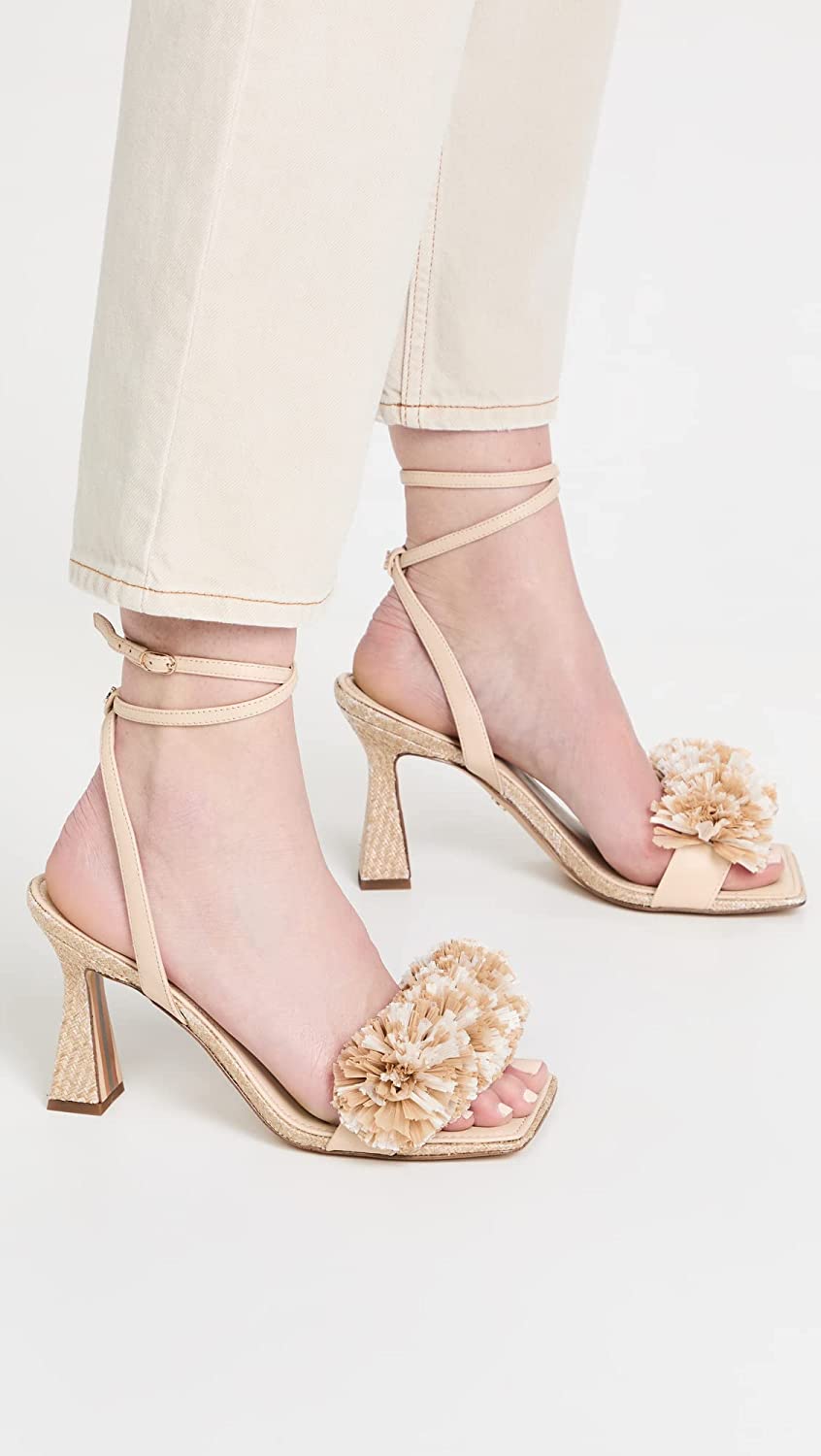 This spring, join the flowers and start blooming. The Clare features wraparound buckled straps and bold pom-pom embellishments.