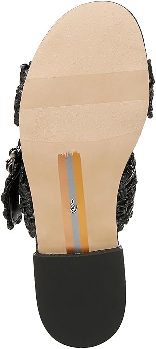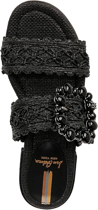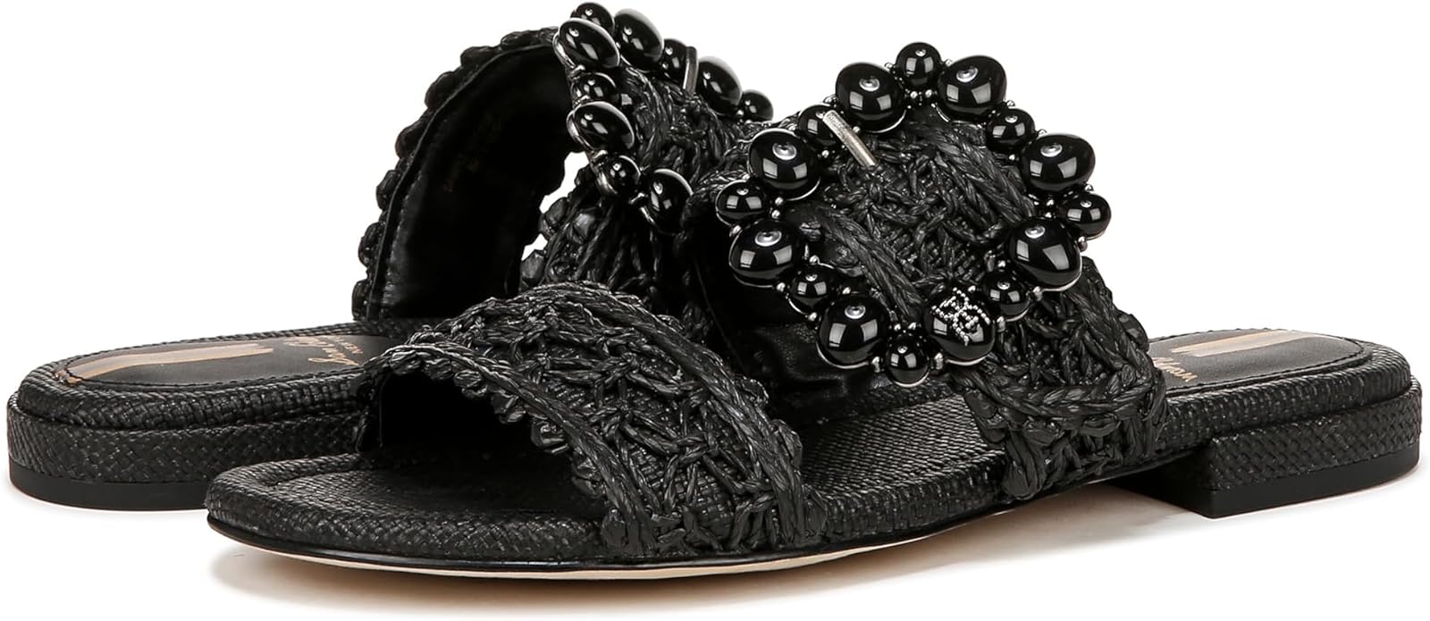 Sam Edelman Elisa Black Raffia Open Toe Double Strap Slip On Flat Slides Sandals