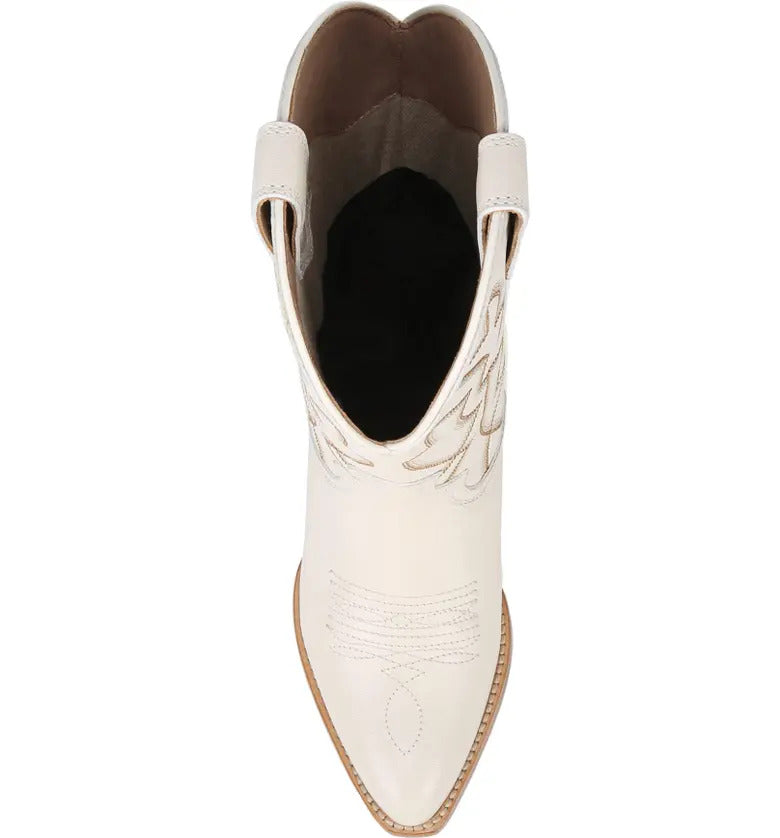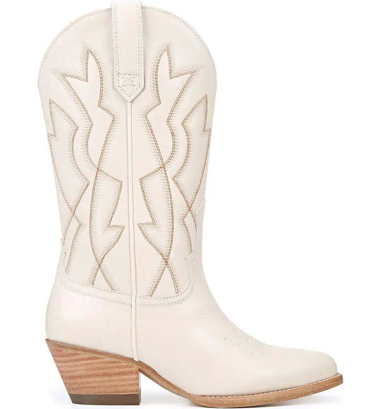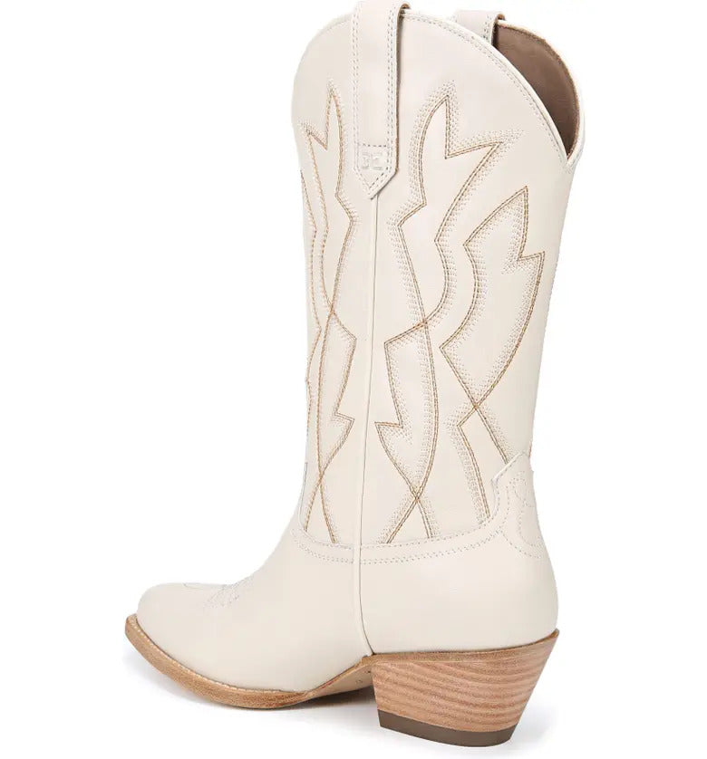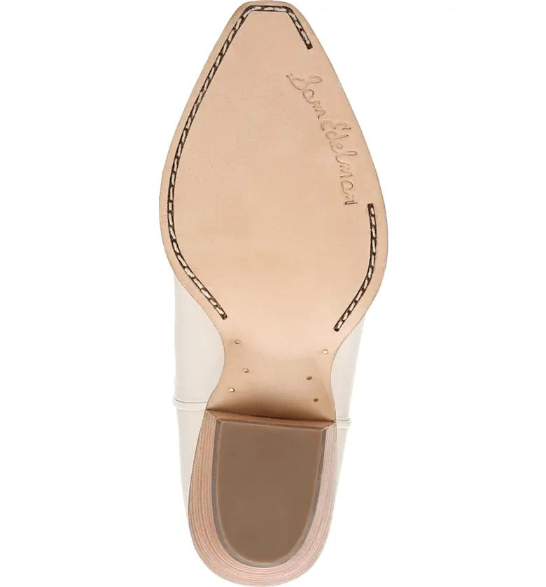 Sam Edelman Fuller Ivory Stacked Heel Pointed Toe Pull On Leather Western Boots