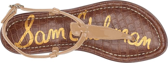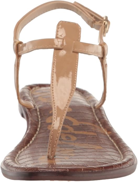 Sam Edelman Gigi Almond Patent Embossed Open Toe Ankle Strap Wide Flats Sandals