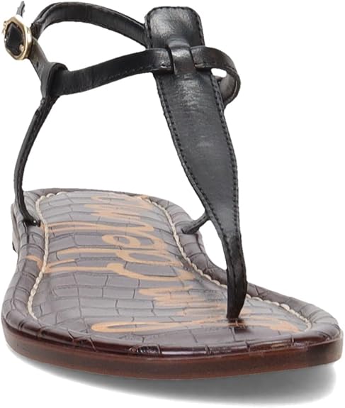 - Thong sandal featuring adjustable ankle strap and croco-embossed insole with logo