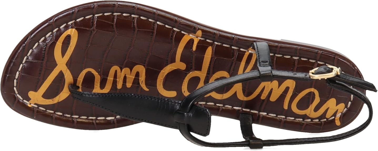 Sam Edelman Gigi Black Leather Embossed Open Toe Ankle Strap Dress Flats Sandals